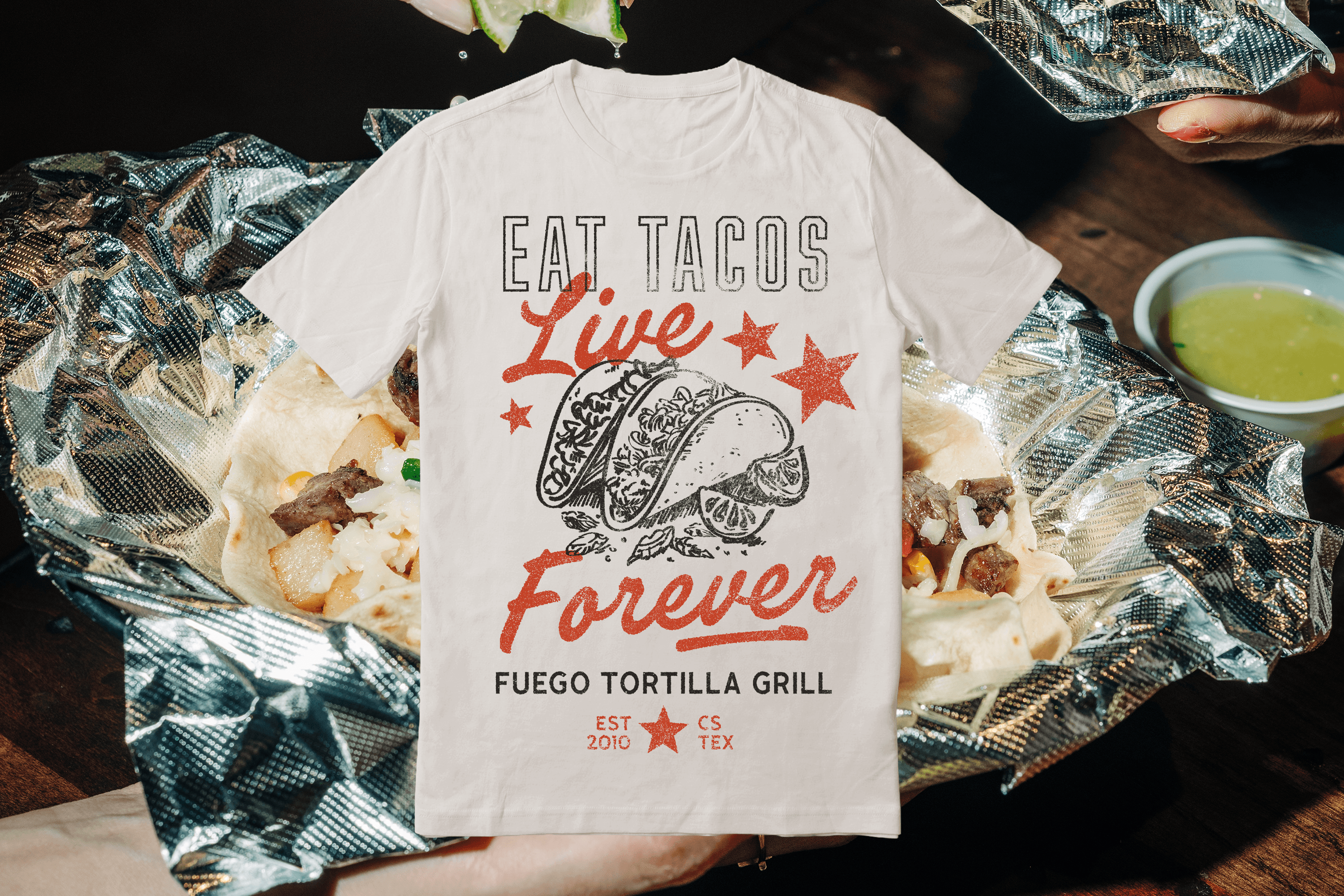 Design efforts for Fuego Tortilla Grill emphasizing fresh, youthful visuals tailored to an early-20s audience. The work included crafting an identity for the University Ambassador campaign, featuring merch and student-focused promotional materials that captured the brand’s laid-back energy while strengthening engagement with local student communities.